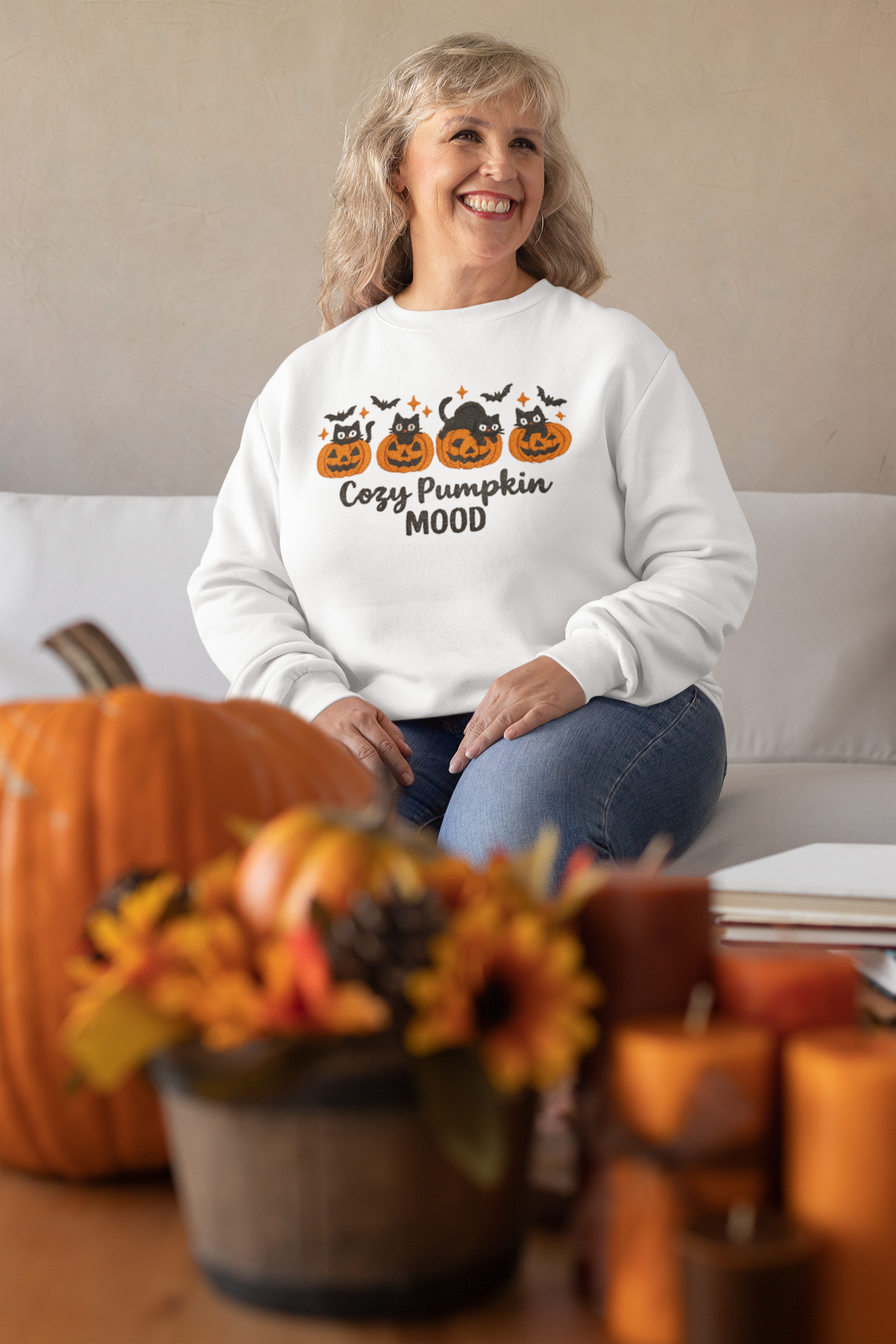 Cozy Pumpkin Mood Sweatshirt, Fall Sweater, Halloween Apparel, Unisex Crewneck, Autumn Fashion, Comfy Gift Idea